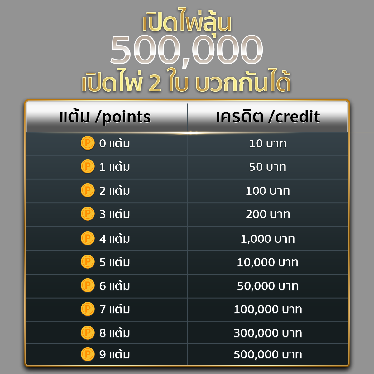 ยอดฝากครั้งแรก 500 บาท เปิดไพ่ฟรี 2 ครั้ง